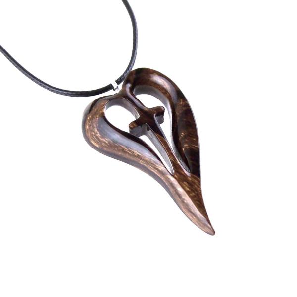 Women Cross Necklace, Hand Carved Wooden Heart Pendant, Wood Cross Pendant, 5th Anniversary Gift for Her, Christian Jewelry