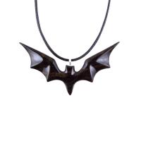 Bat Necklace, Hand Carved Wooden Bat Pendant, Gothic Wood Jewelry Gift for Women Men in Black and Brown