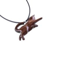 Hand Carved Cat Pendant Necklace, Wooden Kitten Pet Lover Gift, Handmade Wood Jewelry for Men and Women