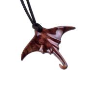 Manta Ray Necklace, Hand Carved Wooden Stingray Pendant, Mens Wood Necklace, Sea Animal Nautical Jewelry Gift for Him